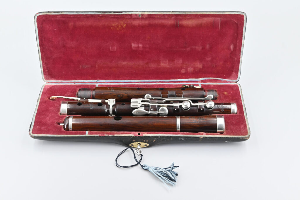This instrument was previously restored and more recently, some fine hairline cracks were repaired by a master flute maker. These tiny cracks were located in places where the nickel silver inlay was inserted into the wood – all three tenon sockets.