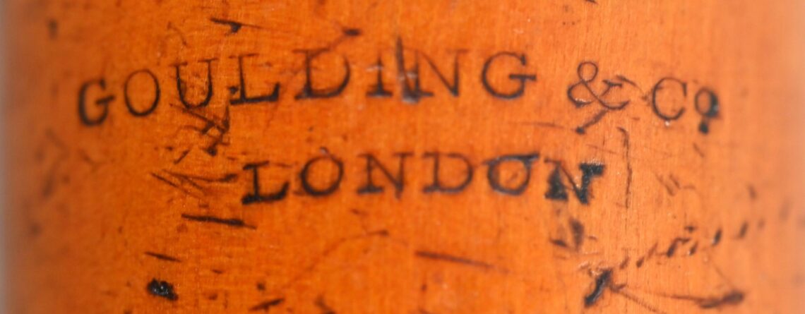 The company GOULDING & CO was created by George GOULDING (1759-1814) in around 1785. He started out in music publishing. During his career in making woodwind instruments, he engaged in several partnerships that led to various forms of the Goulding stamp. The flute is in fantastic shape, with no visible cracks whatsoever (what a nice change!). There are a bunch of scratches – which is just what you’d expect from a flute that’s been around for over 200 years.