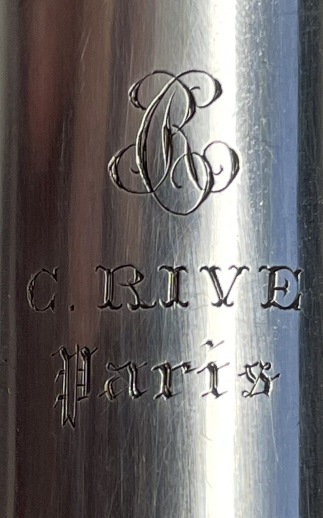 In 1877, Rive set up his own instrument workshop at 93 rue du Temple, Paris. Shortly after, he exhibited his “flûtes cylindriques” at the 1878 Universal Exposition in Paris and was honoured with a silver medal. At the next show in 1889, he also received a silver medal.