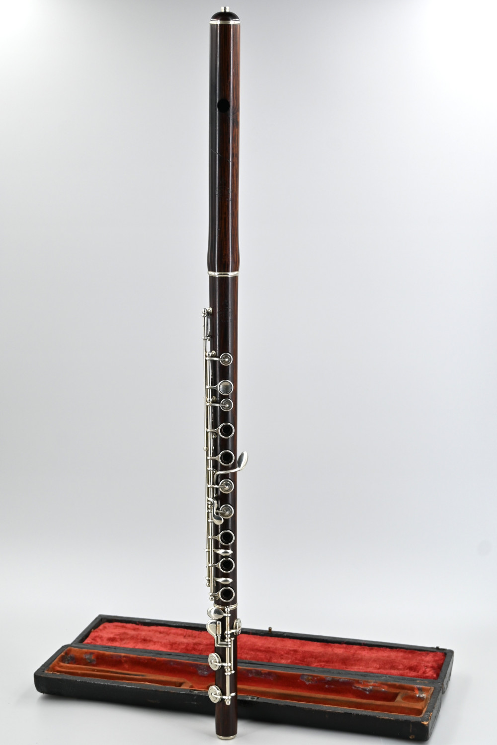 show more This flute is stamped throughout with its maker’s mark, except for the “new” extra, middle joint. It is made of boxwood and has ivory rings and a beautiful ivory cap. The silver key is nicely shaped. The flute plays at a=440 Hz with its original middle joint. An extra middle joint was made for this flute so that its owner could also play it a a=415 Hz. Its round embouchure is masterfully cut. Now fully restored, this flute is in fantastic playing condition. In fact, it is the perfect option for someone who wants to play at a=440 Hz and a=415 Hz on an 18th century original instrument. Important note This instrument contains ivory. A certificate for the legal sale of this instrument within the European Union is supplied when purchased. show less