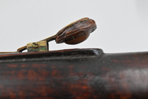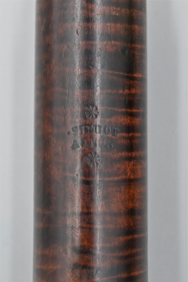 If we look at the photos we can see just what amazing figured maple wood he chose for this bassoon. It gleams with a warm and lustrous reddy-brown colour. The seven keys, rings and butt are expertly crafted in brass. The fingerholes are masterfully cut. All parts of this bassoon have its maker’s stamp.
