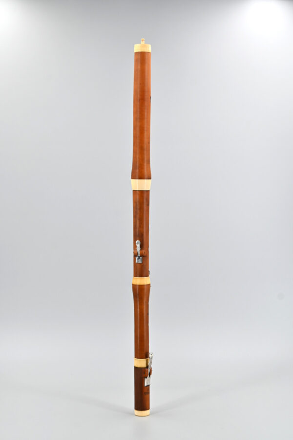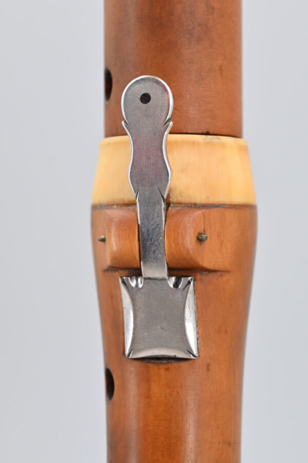 show more Middle joint 1, sounding length 538 mm, pitch a=435 Hz The flute is also marked throughout with the production number IIII. The middle joints only have the IIII mark on the lower tenons. So, after comparison with other extant instruments, we can confirm that these middle joints were shortened by around 6 mm to suit the musical tastes of its previous owners. The embouchure is beautifully cut and unaltered. The engraving on the key is a mystery ready for its new own to unravel. The flute was fully restored and is in wonderful playing condition. We can say that this instrument can be dated to between 1804 and 1808, when its maker was active in Potsdam. Christoph FREYER, father (1708-ca 1770), an instrument maker from Leipzig moved to Potsdam where the literature tells us that he worked in cooperation with Johann Joachim QUANTZ (1697-1773) for the court of the Prussian King, FREDERICK THE GREAT. Friedrich Gabriel August KIRST (ca. 1750–1806) who had previously apprenticed with August GRENSER in Leipzig, worked for Freyer. When Christoph Freyer died, Kirst married his widow and took over the business as instrument maker to Frederick the Great and the Prussian army. He also raised his stepson Johann Gottlieb FREYER (ca. 1764-1808) who was then a mere child and then trained him in woodwind instrument making. Johann Gottlieb Freyer took over and expanded his workshop in 1804. His business went so well that he even bought more property. Around 1806, things began to go downhill, and he died an early death caused by a tumour in 1808. This Freyer flute is exceptionally rare as Johann Gottlieb Freyer didn’t really work long enough to make so many instruments. It is of the same construction and style as late Kirst flutes… instruments truly fit for a king! Important note This instrument contains ivory. A certificate for the legal sale of this instrument within the European Union is supplied when purchased. show less
