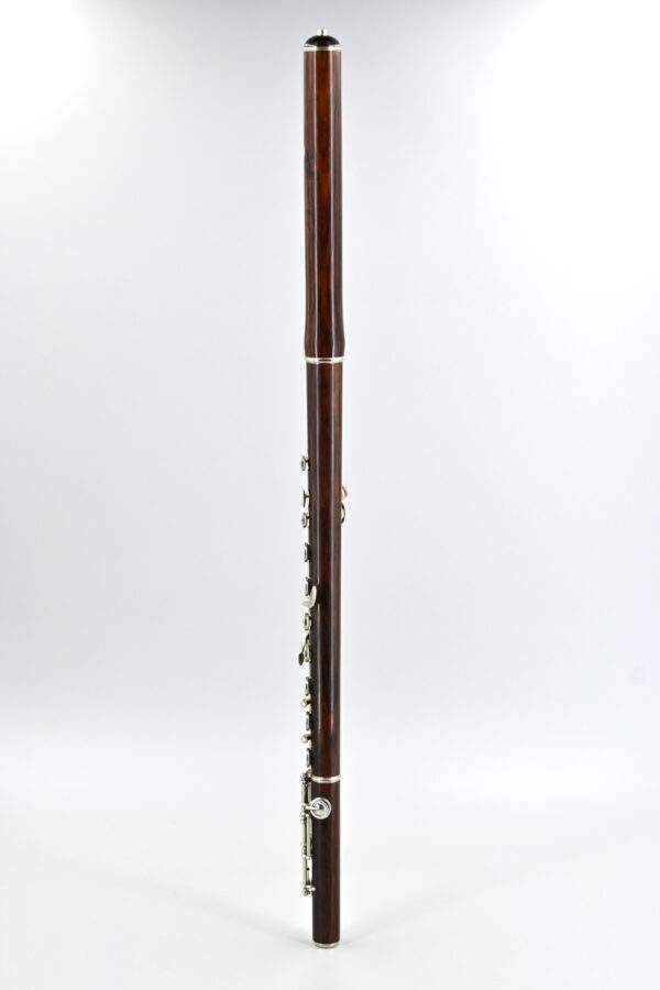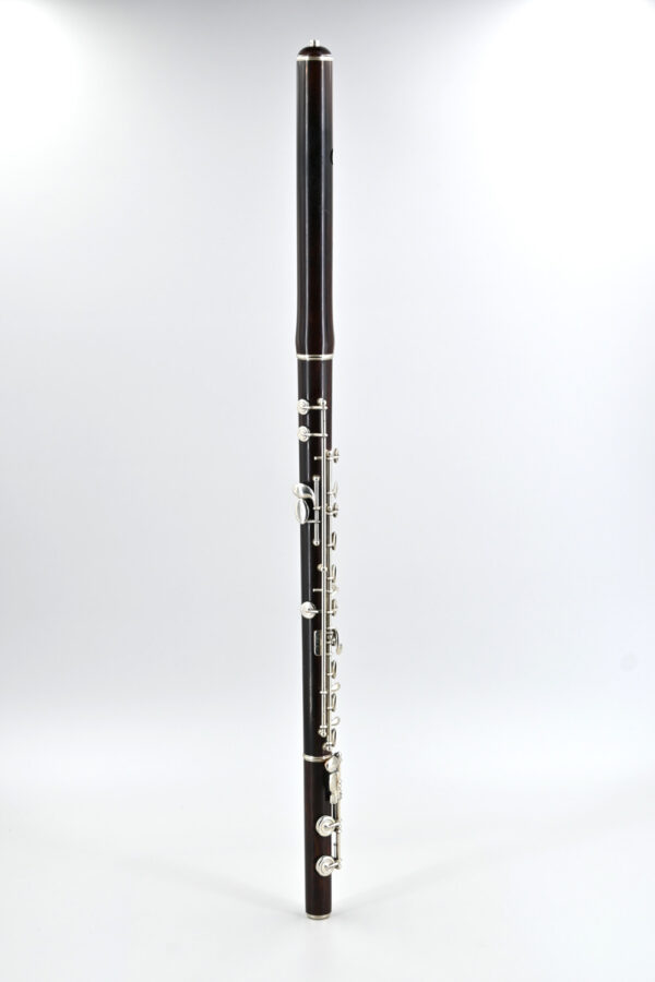 This fine flute is crafted in beautiful, exotic cocuswood. Its elegant ring-key mechanism is expertly sculptured in nickel silver. Its oval embouchure is nicely cut and measures 10.3 x 12.1 mm. It is supplied in its original case.