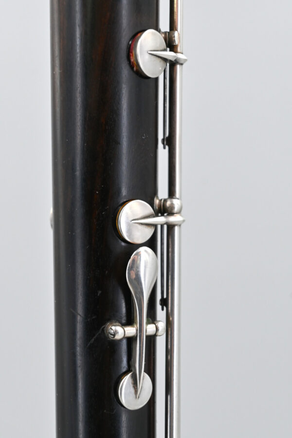 Its embouchure measures 10.7 x 11.9 mm. This particular flute perfectionnée has 12 keys and C-foot. We can see that it has the new F-sharp key, mounted on the main axis – part of Nonon’s 1854 patent. The entire instrument is in fact unchanged and perfect in every respect. Its pitch is around a=444 Hz.