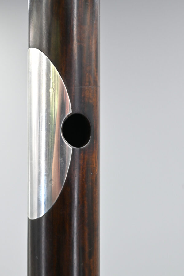 We’re back with an exquisite flute made by the famous Jacques NONON (1802-1877). This Nonon “flûte perfectionnée” with C-foot is truly a masterpiece, wouldn’t you agree? Crafted with great attention to detail, it is made from rich, deep-brown cocuswood. The silver keywork is strikingly elegant. Every part is original and stamped with its maker’s mark. It features a silver lip-plate which is nicely inlaid and also original to the instrument.