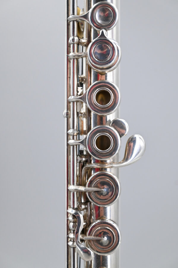 | Description | Solid silver Claude Rive flute with C-foot in original case |