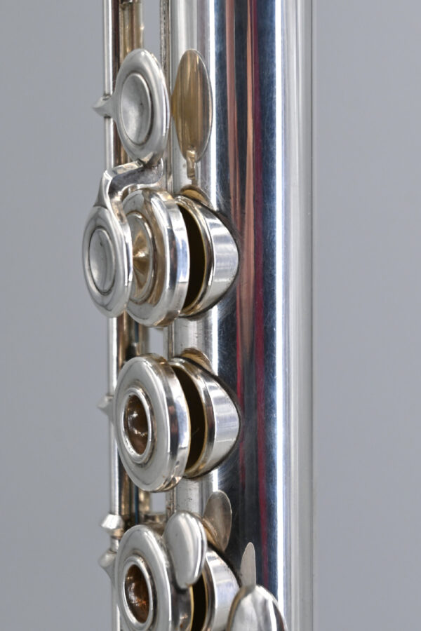 The flute is in wonderful condition and has amazing potential. It was previously repadded but could use some adjustments. It plays at a=440 Hz fully inserted with an incredibly rich and powerful sound.