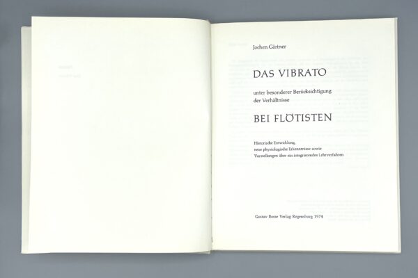 The full title of this book is Das Vibrato unter besonderer Berücksichtigung der Verhältnisse bei Flötisten. Historische Entwicklung, neue physiologische Erkenntnisse sowie Vorstellungen über ein integrierendes Lehrverfahren. This roughly means “A study of vibrato, with particular reference to flutists. Historical development, new physiological findings and proposals for an integrated teaching method”. What else can we say, other than that this book is in quite good condition and waiting to be read once more – see photos.