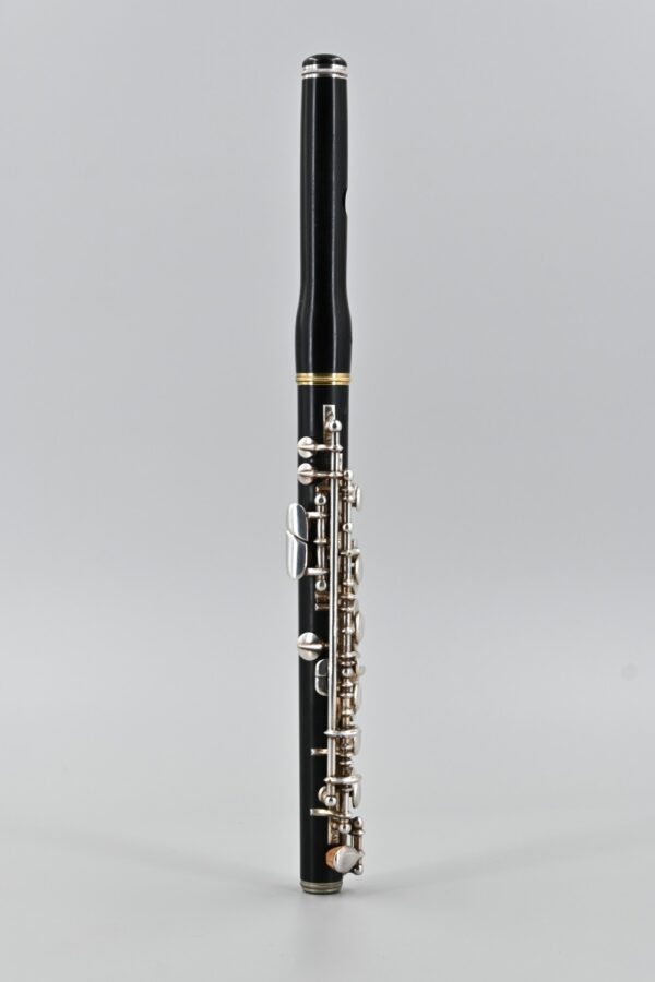 This vintage piccolo is well-maintained, showcasing silver-plated keywork and elegantly designed rings. It’s still functional with the original pads, though it clearly needs some work to be played professionally once more. With a pitch of a=442 Hz, its tone is very refined. It is supplied in a case. It’s a superb choice for anyone looking for a unique handmade piccolo infused with French charm.